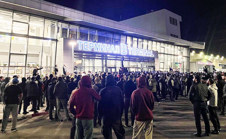 Обыски проводятся по месту жительства лиц, причастных к организации массовых беспорядков в Махачкале. Изъяты записи с камер наблюдения, сообщает Следственный комитет.