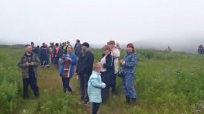 На фото: люди укрываются от цунами на возвышенности в Северо-Курильске Сахалинской области, Россия, 30 июля 2025 года.