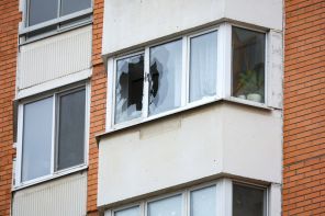 На фото: окно квартиры, получившей повреждения в результате обрушения части колонны при демонтаже конструкций на территории горнолыжного комплекса «Снежком». Обломки при обрушении «Снежкома» ранили женщину внутри квартиры на девятом этаже/