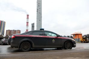 На фото: автомобиль следственного комитета на месте обрушения части колонны при демонтаже конструкций на территории горнолыжного комплекса «Снежком».