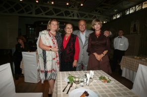 На фото: актрисы Ирина Муравьева и Раиса Рязанова и режиссер и актер Владимир Меньшов с супругой актрисой Верой Алентовой в киноклубе «Эльдар» на 30-летии фильма «Москва слезам не верит». 2009 год.