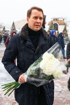 На фото: художественный руководитель Государственного театра Наций Евгений Миронов у храма Христа Спасителя перед отпеванием актрисы Инны Чуриковой.