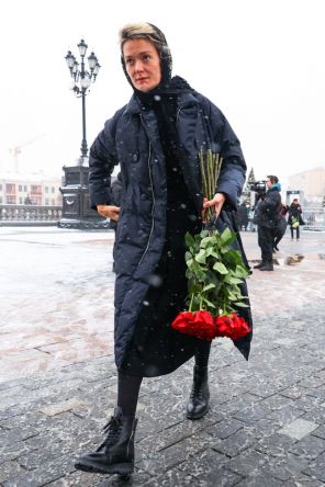 На фото: режиссер, актриса Надежда Михалкова у храма Христа Спасителя перед отпеванием актрисы Инны Чуриковой.