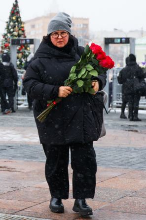 На фото: журналист, режиссер Елена Слатина у храма Христа Спасителя перед отпеванием актрисы Инны Чуриковой.