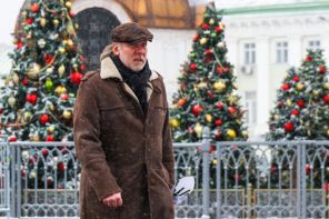 На фото: актер Виктор Раков у храма Христа Спасителя перед отпеванием актрисы Инны Чуриковой.