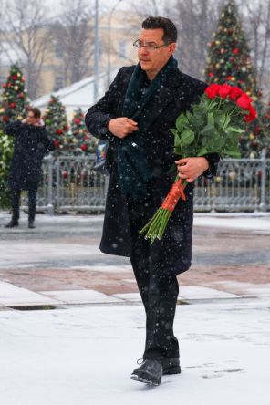 На фото: главный режиссер театра «Ленком Марка Захарова» Алексей Франдетти у храма Христа Спасителя перед отпеванием актрисы Инны Чуриковой.