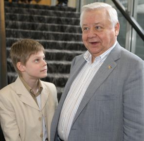 На фото: руководитель МХАТ имени Чехова Олег Табаков с сыном Павлом, перед церемонией награждения премии «Россиянин года», которая состоялась в Большом конференц-зале Администрации президента РФ.