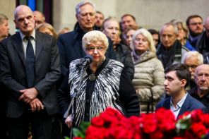 На фото: почетный президент Финансового университета при правительстве РФ Алла Грязнова на церемонии прощания с бывшим председателем Банка России Виктором Геращенко на территории ЦКБ.