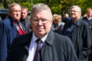 На фото: председатель совета директоров Евразийского рейтингового агентства (ЕРА) Александр Торшин перед началом церемонии прощания с бывшим председателем Банка России Виктором Геращенко на территории ЦКБ.