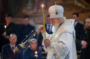 На фото: патриарх Московский и всея Руси Кирилл во время отпевания лидера ЛДПР Владимира Жириновского в храме Христа Спасителя. Политик скончался 6 апреля 2022 года в возрасте 75 лет.