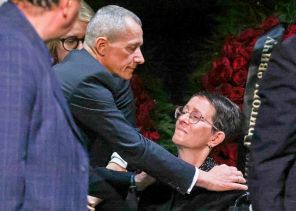 На фото: генеральный директор Национального альянса по вопросам социальной и экологической ответственности, корпоративного управления и устойчивого развития Андрей Шаронов и дочь бывшего министра экономики России Евгения Ясина Ирина на церемонии прощания в Центре культур НИУ ВШЭ.