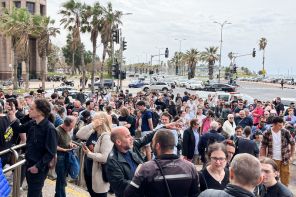 На фото: очередь у посольства РФ на выборах президента России в Тель-Авиве, Израиль.