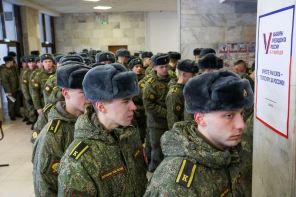На фото: курсанты танкового училища во время голосования на выборах президента России на избирательном участке в Казани, Республика Татарстан.