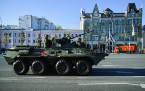 На фото: бронетранспортер БТР-82А по пути на парад Победы на Красной площади, посвященный 80-й годовщине Победы в Великой Отечественной войне.