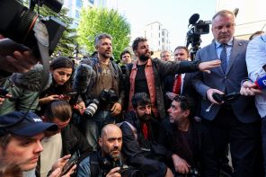 В Стамбуле, возле дворца Долмабахче на Босфоре — возле рабочего офиса президента Турции, в котором проходили переговоры, двое суток дежурили около 200 репортеров со всего мира. На кадрах видно, как журналисты, многие из которых уже выглядели уставшими, либо прячутся от солнца, либо просматривают новостные ленты на своих смартфонах, либо настраивают оборудование.