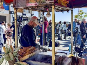 В Стамбуле, возле дворца Долмабахче на Босфоре — возле рабочего офиса президента Турции, в котором проходили переговоры, двое суток дежурили около 200 репортеров со всего мира. На кадрах видно, как журналисты, многие из которых уже выглядели уставшими, либо прячутся от солнца, либо просматривают новостные ленты на своих смартфонах, либо настраивают оборудование.