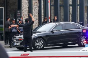 На фото: автомобиль у рабочего офиса президента Турции Долмабахче, где ожидалось начало переговоров России и Украины.