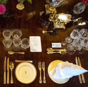 На фото: приборы для президента США на государственном банкете по случаю его визита в Виндзорский замок.