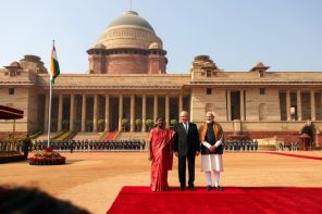 На следующее утро состоялась торжественная официальная встреча в Раштрапати-Бхаване. Индия всеми способами давала понять, что дружба между Индией и Россией — особенная. Это дружба, взятая со страниц истории и проверенная временем.