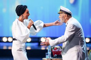 На фото: певица Алсу и певец Бедрос Киркоров во время юбилейного концерта «От сердца к сердцу: перелистывая страницы», посвященного 90-летию артиста, Государственный Кремлевский дворец (ГКД), 2022 год.