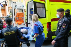 На фото: актер Михаил Ефремов на носилках у здания Пресненского суда в Москве, где ему стало плохо во время рассмотрения по существу дела о ДТП со смертельным исходом, 2020 год.