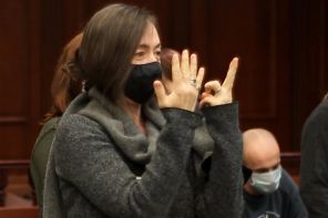 На фото: жена актера Михаила Ефремова Софья Кругликова перед началом рассмотрения апелляции на обжалование приговора актеру Михаилу Ефремову, осужденному на 8 лет колонии за гибель человека в ДТП, на заседании в Мосгорсуде. Мосгорсуд снизил срок наказания Ефремову с 8 до 7,5 года, Москва, 2020 год.