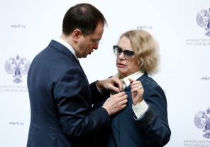 На фото: министр культуры РФ Владимир Мединский и актриса Валентина Талызина на церемонии награждения деятелей культуры и искусства государственными наградами РФ и ведомственными наградами Министерства культуры РФ в атриуме Большого театра России, 2017 год.