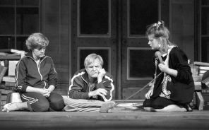 На фото: Валентина Талызина в роли Алевтины Васильевны, Леонид Марков в роли Балтазарова и Ирина Муравьева в роли Людмилы (слева направо) в спектакле «Цитата» по пьесе в стихах Леонида Зорина (режиссер Павел Хомский) на сцене Академического театра имени Моссовета, 1987 год.
