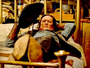 На фото: Майкл Мэдсен в роли Джо Гейджа в вестерне режиссёра и сценариста Квентина Тарантино «Омерзительная восьмерка». Действие картины происходит вскоре после Гражданской войны в США. Герои фильма, охотники за головами и их случайные соседи, вынуждены пережидать зимнюю бурю на постоялом дворе. Фильм, анонсированный осенью 2013 года, изначально задумывался как продолжение предыдущей работы Тарантино, вестерна «Джанго освобождённый». В 2014 году Тарантино отменил проект после того, как сценарий «Омерзительной восьмёрки» был без его ведома опубликован в интернете, однако позже он возобновил работу над фильмом. В широкий прокат фильм вышел 1 января 2016 года. Фильм был удостоен премий «Оскар», BAFTA и «Золотой глобус» за музыку Эннио Морриконе.