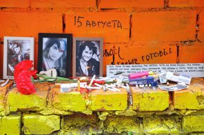 На фото: мемориал у стены памяти Виктора Цоя на Арбате в Москве.