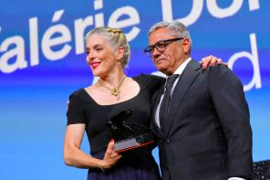 На фото: член жюри Мохаммад Расулоф (справа) позирует фотографам с Валери Донзелли, победительницей в номинации за лучший сценарий к фильму «A pied d’oeuvre», во время церемонии награждения 82-го Венецианского кинофестиваля в Венеции, Италия.