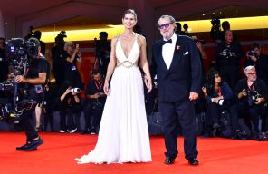 На фото: Джулиан Шнабель и Луиза Кугельбер на церемонии вручения премии Cartier Glory To The Filmmaker Award 2025 и на красной дорожке фильма Джулиана Шнабеля «В руке Данте» или «Рукою Данте» (англ. In the Hand of Dante), Венеция, Италия.