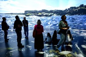 На фото: члены делегации, представляющией Сербию на Международном музыкальном конкурсе «Интервидение», во время экскурсии на территории парка «Зарядье».