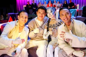 На фото: участники группы Nomad, представляющей Киргизию на Международном музыкальном конкурсе «Интервидение» 2025, перед выступлением в концертном зале «Live Арена».