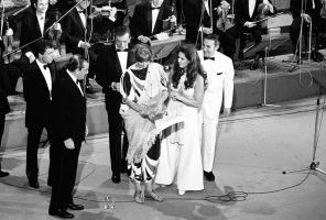 На фото: британская актриса Ванесса Редгрейв разбивает об пол часть своей награды за лучшую женскую роль, 1969 год. Ив Монтан (слева) и Клаудия Кардинале (справа) с изумлением наблюдают за её ролью в фильме «Айседора» на Каннском кинофестивале во Франции.