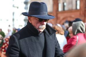 На фото: певец Александр Розенбаум на церемонии прощания с заслуженным артистом РФ режиссером, телеведущим Тиграном Кеосаяном в Армянской церкви на Олимпийском проспекте.