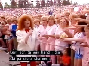 Центральным хитом англоязычного альбома Аллы Пугачёвой Watch Out (над которым также работал продюсер ABBA), стал написанный Чернавским Superman, который прижился в Скандинавии. В 2015 году его вновь прославил американский комик Джимми Фэллон, который оценил его в своём лейт-найт шоу. Помимо этого, песня стала главным хитом тинейджерской поп-группы The Pinks. На фото: Алла Пугачева во время гастролей в Швеции, 1985 год.