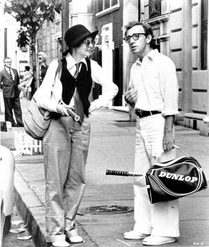 Китон сама признавалась, что Аллен видел в персонаже «идеализированную версию» её самой. В фильме они сыграли пару, чьи отношения были динамичными и полными противоречий, на фоне жизни в Нью-Йорке. Игра Китон получила высокую оценку: CNN охарактеризовал её как «неловкую, самоуничижительную, говорящую очаровательными вихрями полулогических рассуждений», а Аллен — как «нервный срыв в замедленной съемке». На фото: кадр из фильма «Энни Холл».