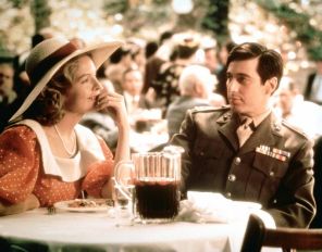Прорывная роль Китон случилась, когда она была утверждена на роль Кей Адамс, девушки и будущей жены Майкла Корлеоне (которого играл Аль Пачино) в фильме Фрэнсиса Форда Копполы 1972 года «Крёстный отец». Коппола отметил, что впервые заметил Китон в фильме «Любовники и другие незнакомцы» и утвердил её на эту роль из-за её репутации эксцентричной актрисы, которую он хотел, чтобы она привнесла в эту роль (Китон утверждала, что в то время её обычно называли «чудаковатой актрисой» киноиндустрии). Её игра в фильме была в общих чертах основана на её реальном опыте съёмок фильма, и оба эти опыта она описала как «женщина в мире мужчин». «Крёстный отец» имел беспрецедентный успех у критиков и в финансовом плане, став самым кассовым фильмом года и получив премию «Оскар» за лучший фильм 1972 года. На фото: Аль Пачино в роли Майкла Корлеоне и Дайан Китон в роли Кей Адамс в фильме «Крестный отец», 1972 год.