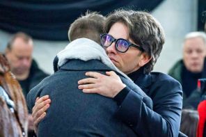На фото: сын Александра Олейникова, продюсер, сценарист Максим во время церемонии прощания с режиссером и телеведущим Александром Олейниковым.
