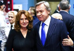 На фото: председатель комиссии Совета Федерации по информационной политике и взаимодействию со СМИ Алексей Пушков и актриса Нина Пушкова перед началом ХХIV церемонии вручения национальной премии в области кинематографии «Золотой орел» в 1-м павильоне киноконцерна «Мосфильм».