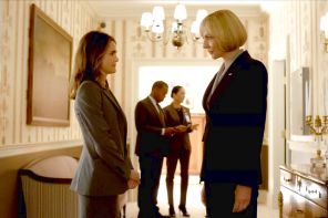 На фото: Кери Рассел в роли Кейт Уайлер, Эллисон Дженни в роли Грейс Пенн в сцене из третьего сезона сериала «Дипломатка». «Дипломатка» (The Diplomat, 2023-…) — это политический триллер Netflix о Кейт Уайлер (Кери Рассел) — опытной сотруднице госдепа, назначенной послом США в Великобритании в разгар международного кризиса. Ей предстоит улаживать военные конфликты, приспосабливаться к новой роли и спасать непростые отношения с мужем-политиком. Острая политическая драма с элементами комедии и шпионажа.