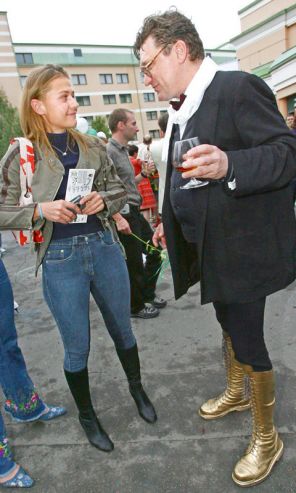 На фото: актриса Мария Голубкина и режиссер Валентин Гнеушев на праздновании дня рождения радиостанции «Серебряный Дождь» в Le Meridien Moscow Country Club в Нахабино, Московская область, 2006 год.