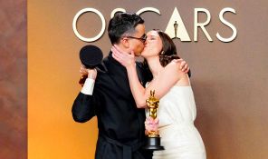 На фото: Александр Сингх и Натали Мустеата, получившие награду в номинации «Лучший игровой короткометражный фильм» за фильм «Двое, обменивающиеся слюной», на фотосессии победителей 98-й церемонии вручения кинопремии «Оскар».