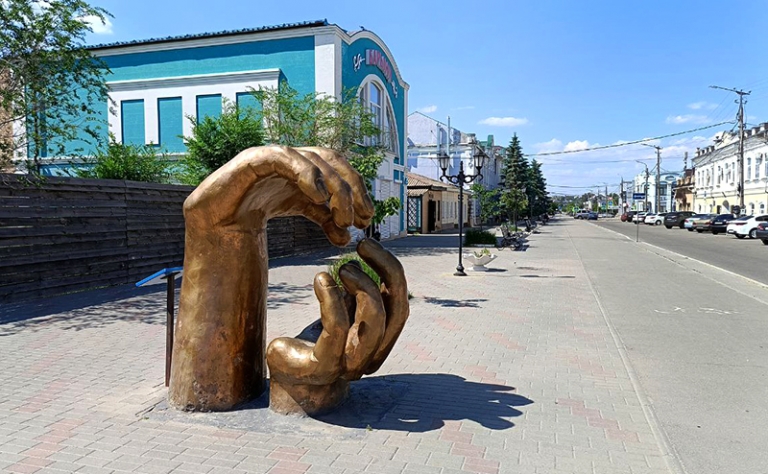 — Одну из его работ установили на троицком «Арбате», тоже его подарок городу — «Ладони судьбы». На эту работу тоже была неоднозначная реакция общества. Он решил и последнюю работу («Семья солдата СВО») подарить городу.