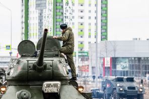 Жилой район Екатеринбурга Вторчермет 17 апреля перекрыли ради очередной репетиции парада Победы, появились первые кадры с военной тренировки. За движением боевых машин с интересом наблюдали местные жители.