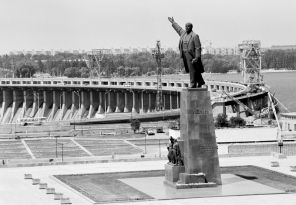 На фото: памятник В.И. Ленину у Днепрогрэса в Запорожье, Украинская ССР, СССР, 1980 год.