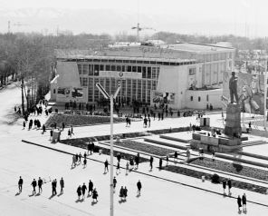 На фото: памятник Владимиру Ильичу Ленину и кинотеатр имени А. Джами на площади имени В. И. Ленина, Душанбе, Таджикская ССР, СССР, 1966 год.