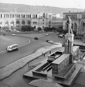 На фото: памятник Владимиру Ильичу Ленину и второй Дом правительства Армянской ССР на площади Ленина, Ереван, Армянская ССР, СССР, 1970 год.