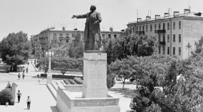 На фото: памятник Владимиру Ильичу Ленину работы скульпторов Омара Гасан оглы Эльдарова и Токая Габиб оглы Мамедова на площади Ленина, Сумгаит, Азербайджанская ССР, СССР, 1966 год.